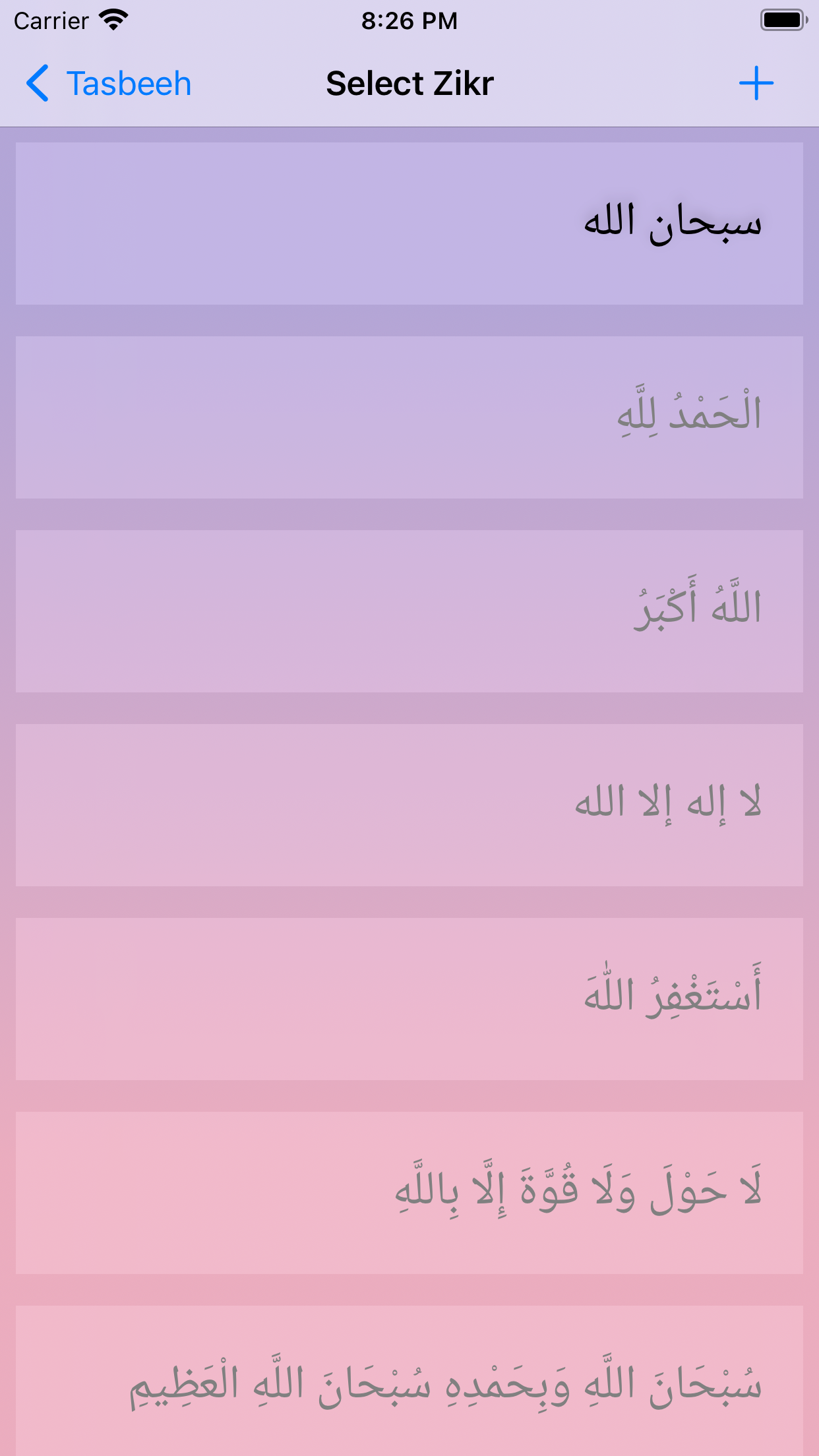 Tasbeeh app comes with predefined common zikrs that you can recite daily.