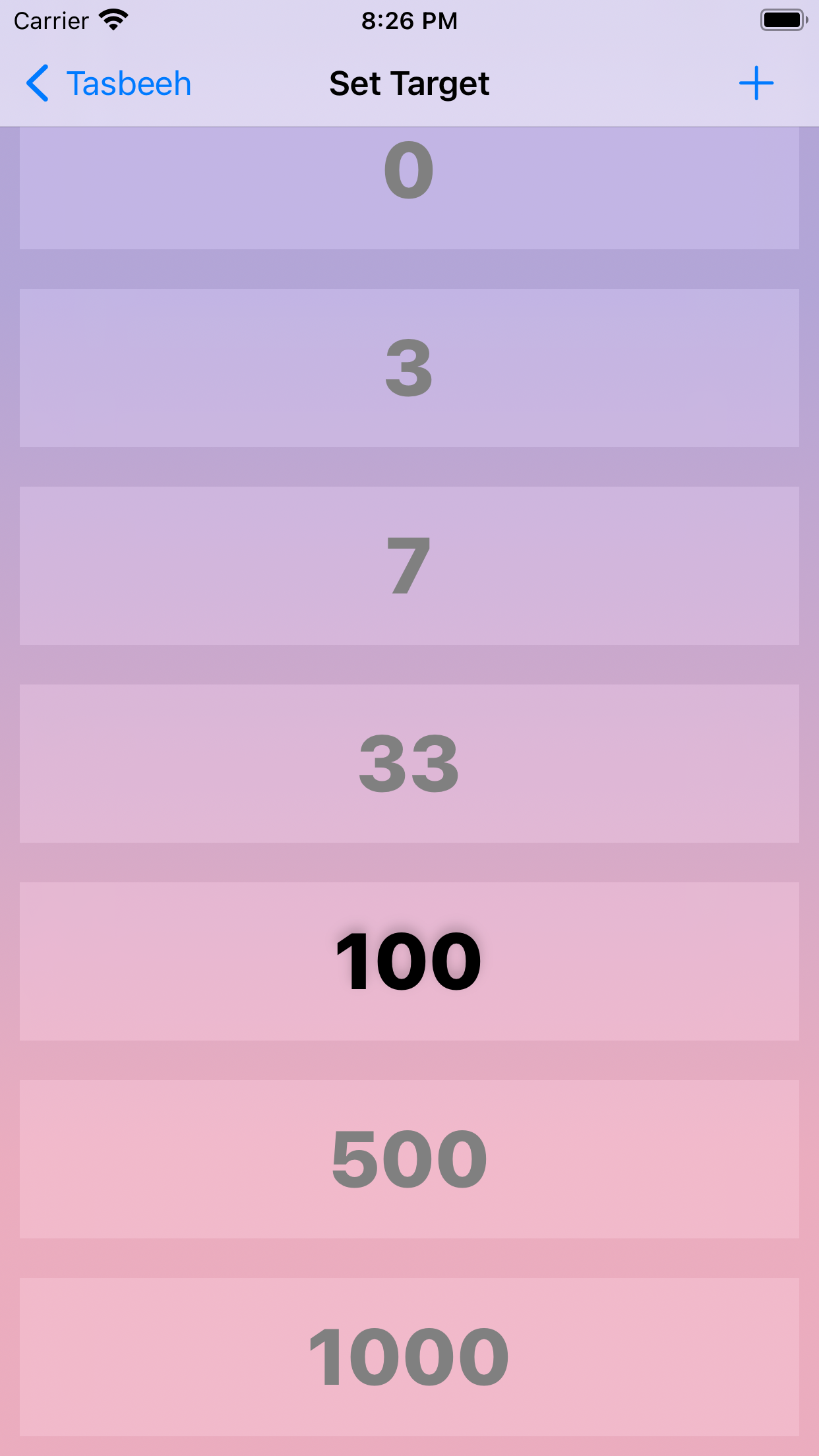 Set different target for different zikrs. The counts are maintained even when you close the app.